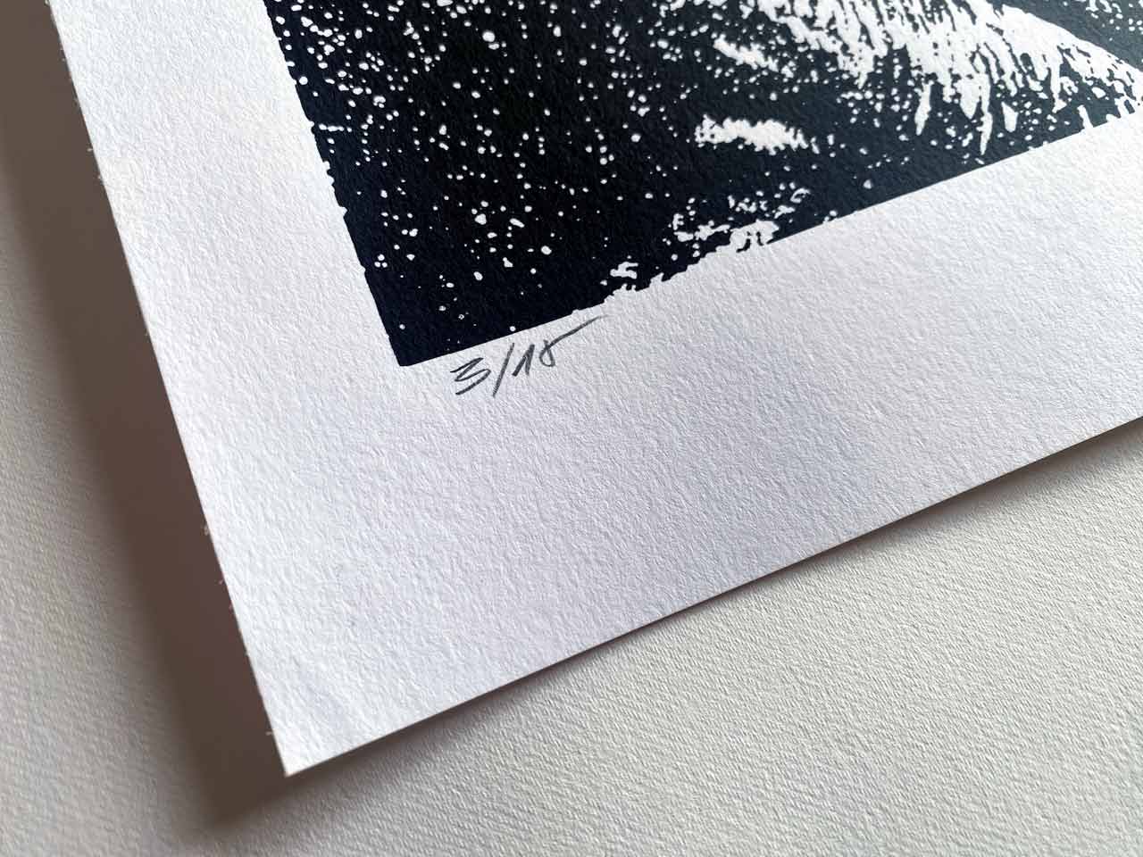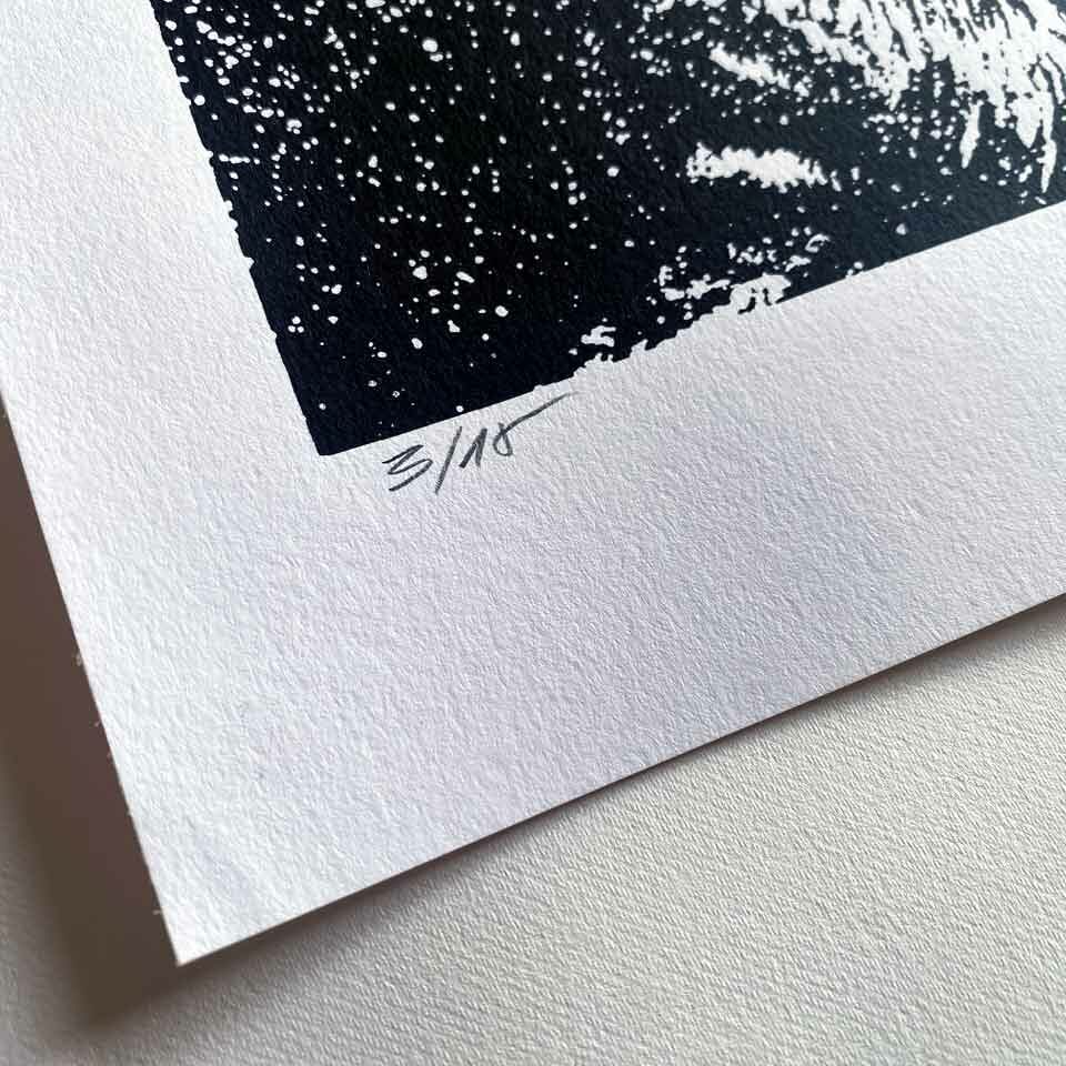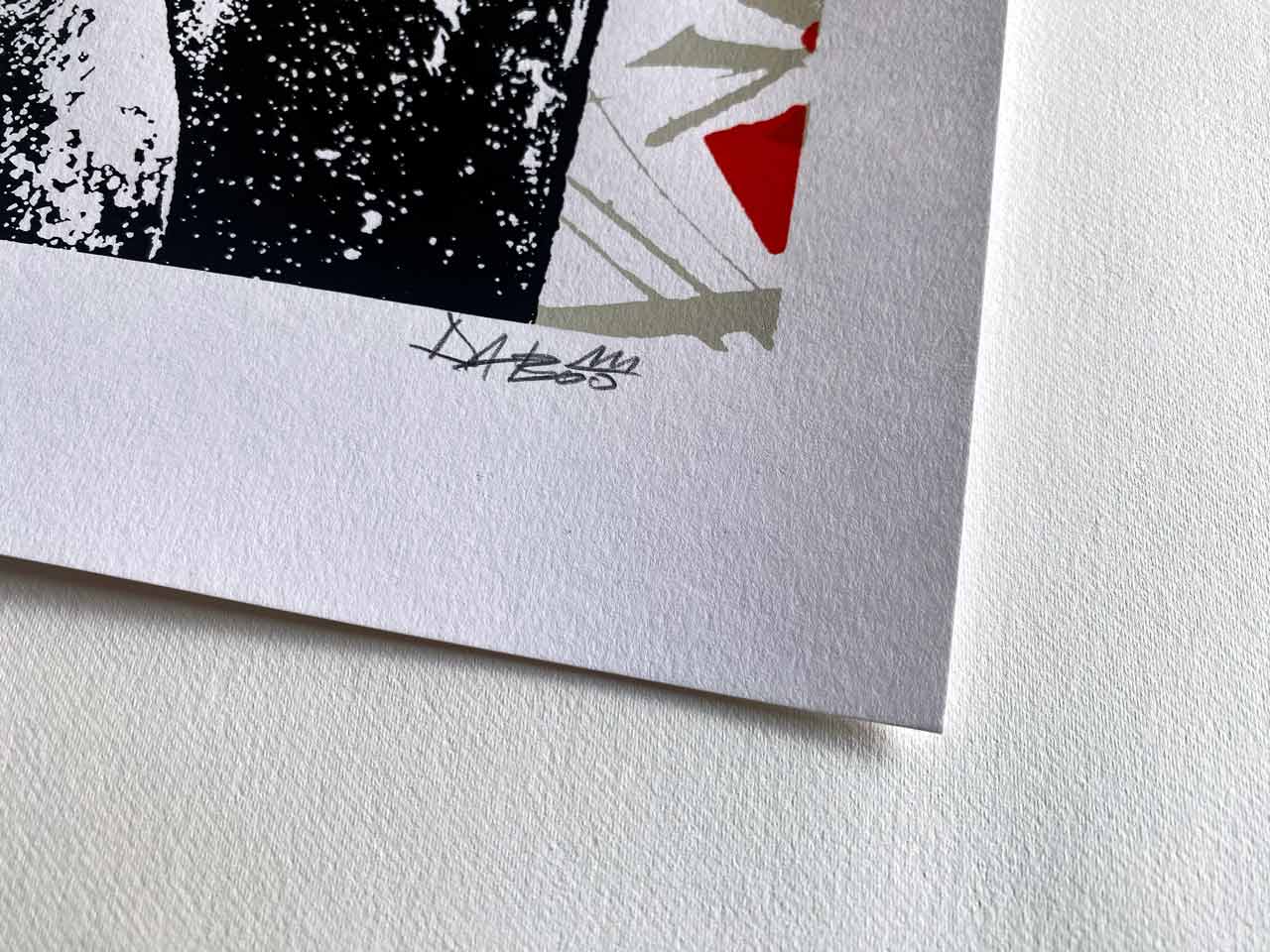 Please note this limited edition, hand pulled silkscreen print is both signed and numbered, these are not digital prints and may have slight variations to the displayed photographs. Each print is a unique item and will have its own textures and characteristics created as the paint was transferred from screen to paper.